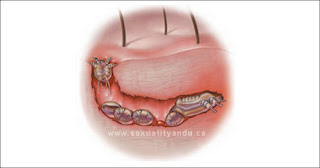 -Gatal di daerah kemaluan (seringkali semakin memburuk pada saat malam hari) disebabkan karena alergi pada sensitassi antigen kutu